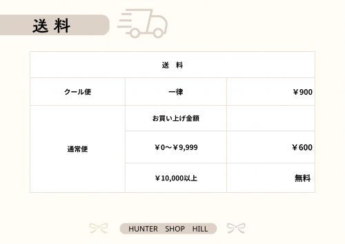 9,999円未満の場合は、一律600円を頂戴いたします。